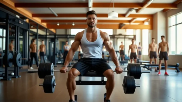 Un hombre atlético levanta pesas en gimnasio